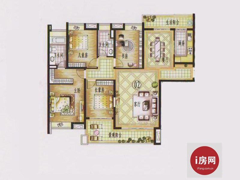 7号02户型4室2厅2卫1厨 168.00㎡