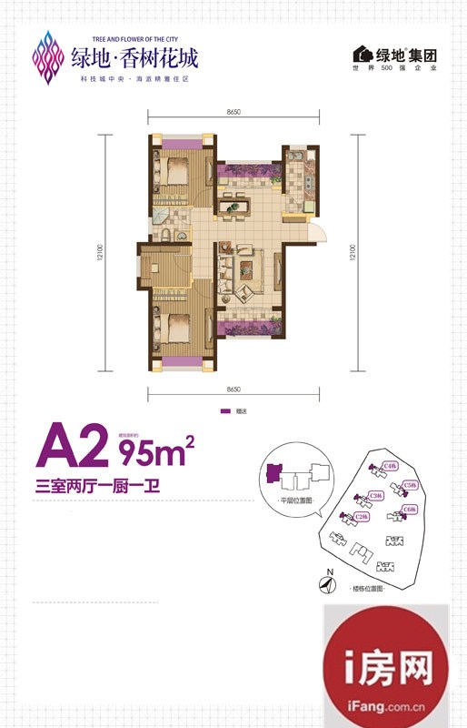 绿地香树花城A2户型3室2厅1卫1厨 95.00㎡.jpg
